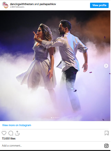 Danielle Fishel, best known for Boy Meets World, and Pasha Pashkov danced a contemporary number to Aerosmith’s “Dream On,” scoring 34 out of 40, but unfortunately becoming the seventh couple eliminated from Season 34.